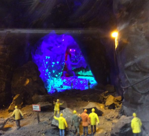 “Schau mal hier” und “guck mal da”, diese Ausrufe hört man hier ständig. Mal zum Begleiter nebenan geraunt, mal über die Mini-Welten von Besucher zu Besucher gerufen. “Schau mal hier: im Bergwerk hat sich ein Drache versteckt!”, “Hast Du schon die Skifahrer gesehen, die da hinten über die Piste fahren?”, “In der Speicherstadt brennt es, die Feuerwehr ist zum Löschen angerückt.”, “Die Menschen auf dem Dom essen ja Zuckerwatte.”, “Und hier – hehe – in dem Büroturm verneigen sich die Menschen vor einem Kaffeeautomaten.”